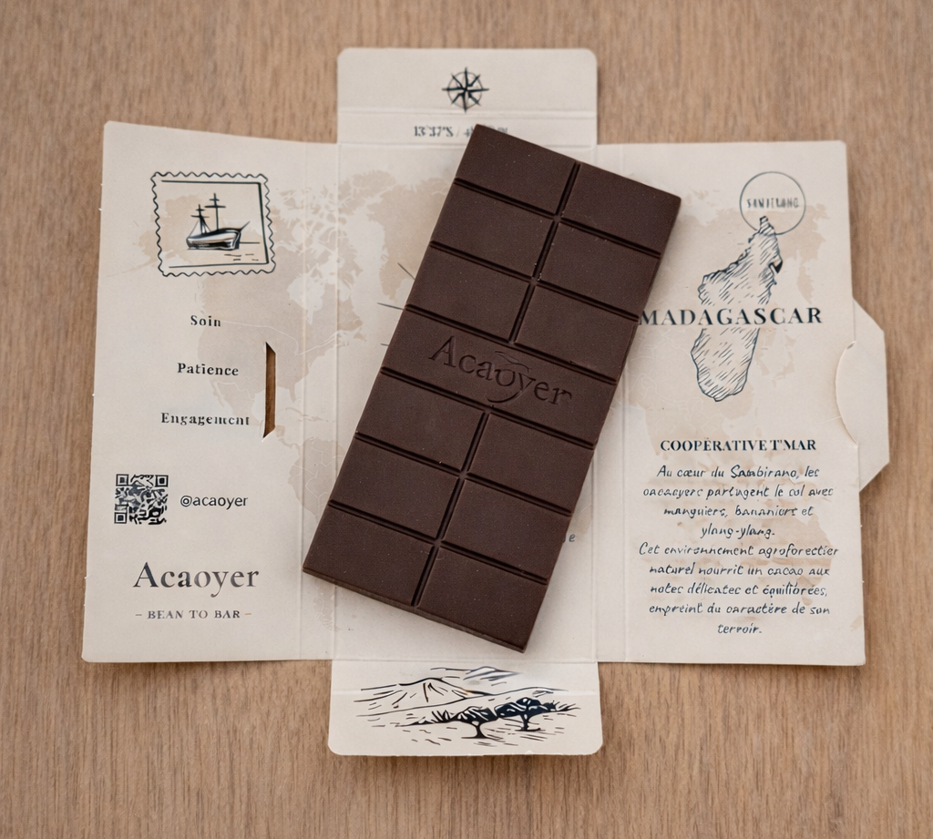 Nous travaillons les fèves de cacao origine par origine, en lien avec des coopératives engagées, pour fabriquer des chocolats sincères, gourmands et respectueux de leur terroir.
